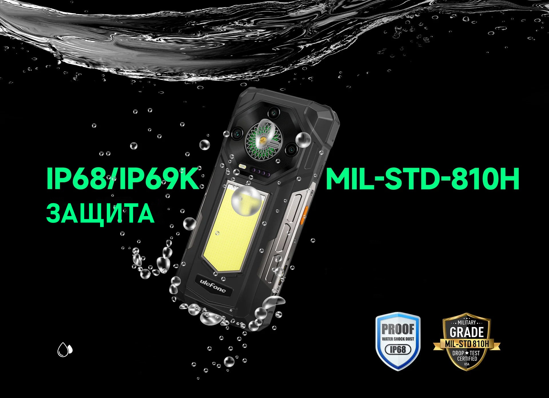 3. Ulefone Armor 33 защищён от брызг, воды, пыли, протестирован в контролируемых лабораторных условиях IP-68 по стандарту IEC 60529 (максимальная глубина до 1.8 метров в течение 30 минут). Зарядное устройство и аксессуары не защищены от влаги. Защита от влаги и пыли может снижаться по мере естественного износа. Не заряжайте смартфон после контакта с влагой. Гарантия не распространяется на любые повреждения, вызванные контактом с влагой или механическими повреждениями.