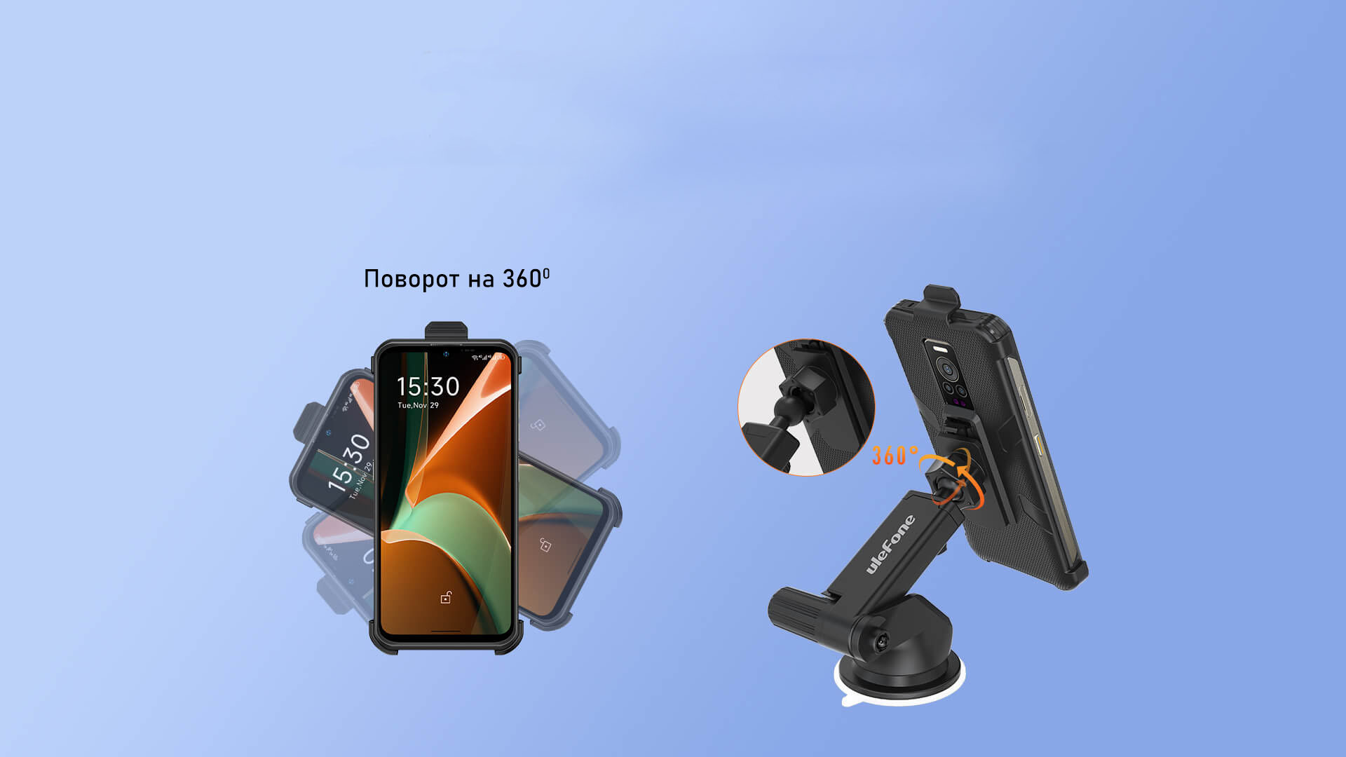 Держатель Armor можно поворачивать на 360° вокруг оси. Вы можете закрепить смартфон горизонтально или вертикально, в зависимости от ситуации, как Вы видимо оптимально.