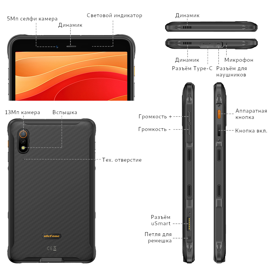 Предыдущие характеристики являются теоретическими значениями, основанными на конструкции продукта. Некоторые функции и технические характеристики могут различаться в зависимости от рынка. Для предоставления точной информации о продукте, технических характеристик и функций Ulefone может в режиме реального времени вносить коррективы в предыдущие спецификации, чтобы они соответствовали производительности продукта, спецификациям, индексам и компонентам фактического продукта. Информация о продукте может быть изменена и дополнена без предварительного уведомления.