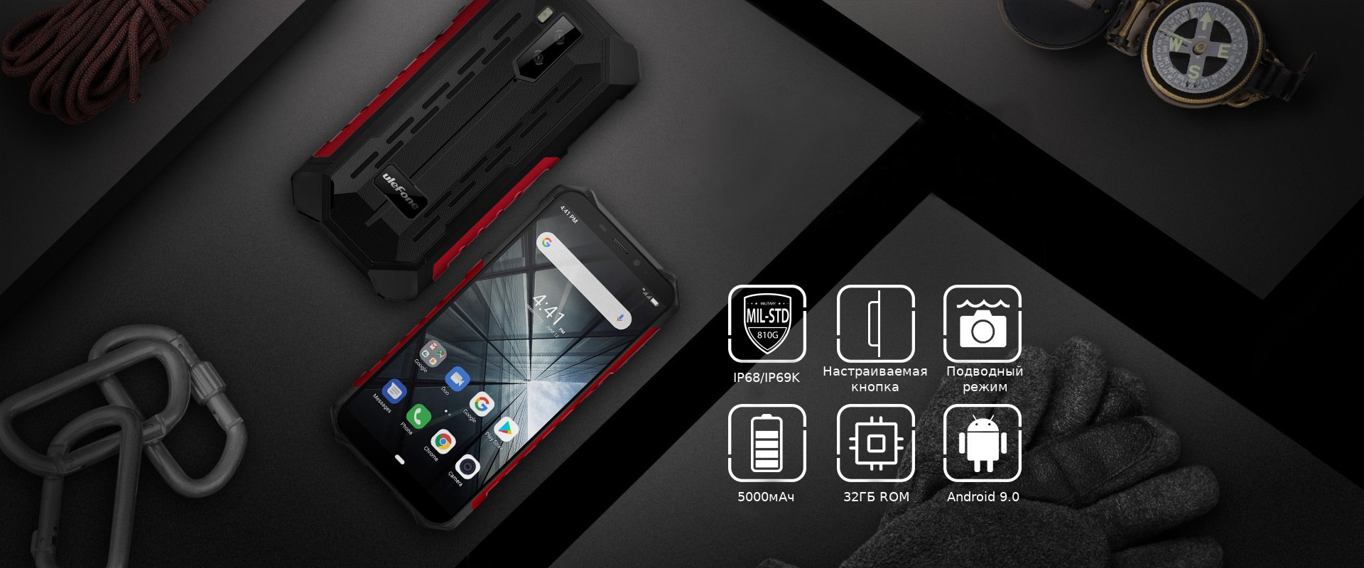 Соответствие стандартам IP68/IP69K позволяет смартфону находиться на глубине до 1.5м в течение 30 минут, он может быть погружен в бетонный раствор на глубину до 1м на срок до 24 часов, выдерживает падения с высоты до 1.2м. Смартфон Ulefone Armor X3 готов пройти самые суровые испытания вместе с Вами.