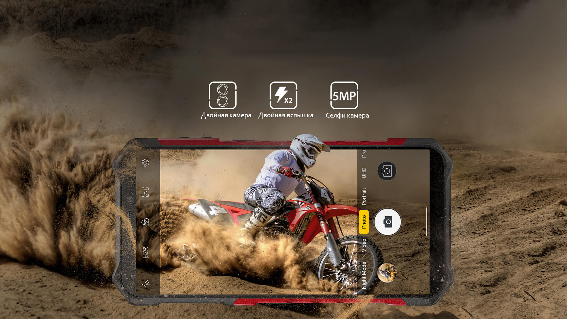 Ulefone Armor X9 Pro обеспечивает отличное качество фото благодаря двойной камере 13+2Мп. Двойная вспышка позволяет делать точные кадры при низком освещении. Селфи камера 5Мп позволяет распознавать лицо владельца.