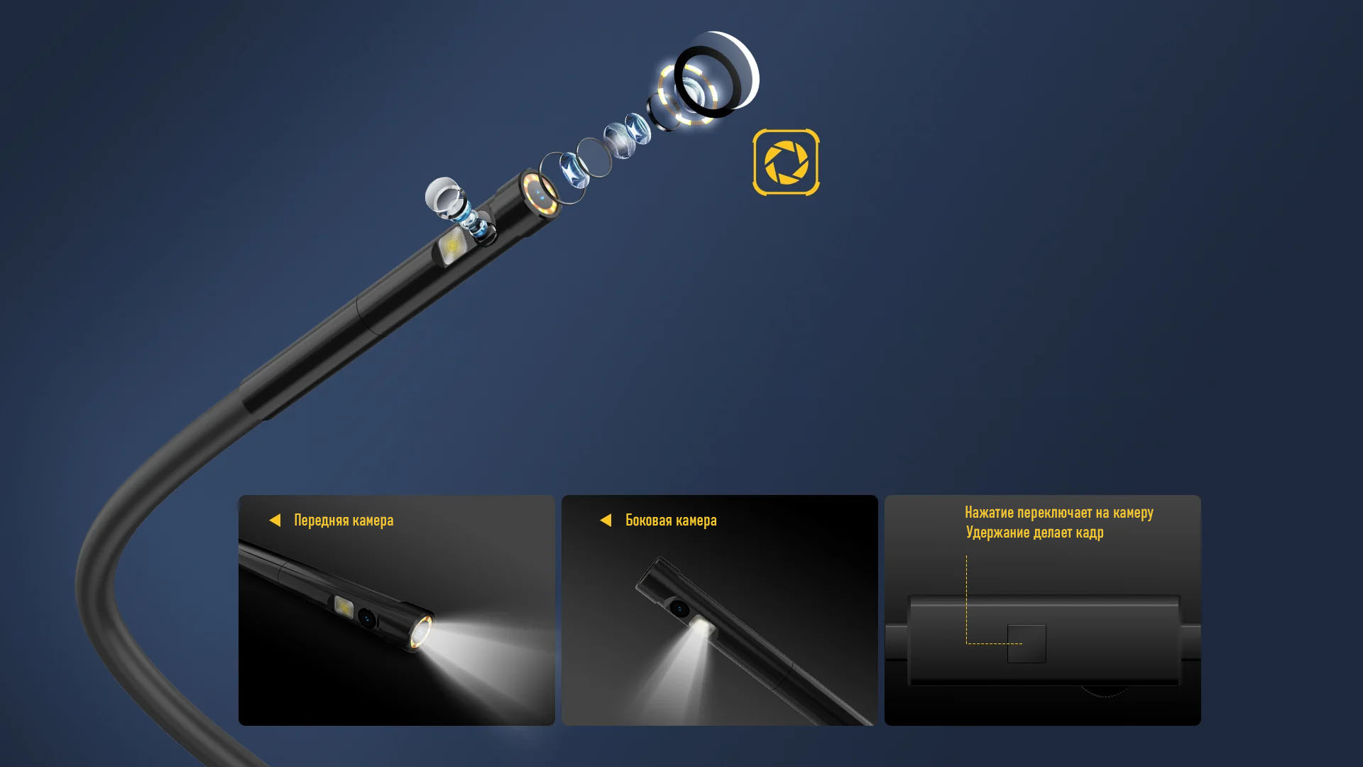 | Боковая камера | Разрешение: 1Мп Сенсор: OV9734 Угол обзора 70° 1 светодиод, с регулировкой Качество фото: 720*1280, 480*720 Качество видео: 720P к/с, 480P 30 к/с Формат видео: MP4 |