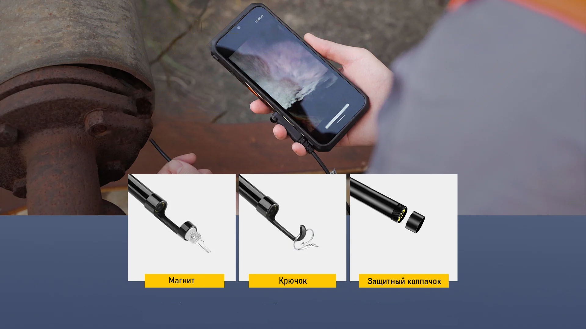 | Комплекция | Эндоскоп uSmart E02 Инструкция Отвёртка Винт x 2 Магнит Крючок Защитный чехол для камеры |